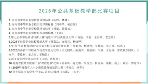 会上,杨晓桦老师聚焦2025年世界职业院校技能大赛,从确定赛项、选手选拔、技能训练等方面分享了备赛历程。陈俊菁、李惠、王安平三位老师围绕海南省中等职业学校教学能力比赛,分别进行了教学展示,生动呈现了“无生授课”情境下的教学设计与互动技巧。陈文群老师展示了学院第二届“课程思政”比赛中说课环节的完整流程。各位老师的经验分享紧扣赛事核心、贴合教学实际,引发了教师们的热烈讨论与深入思考。